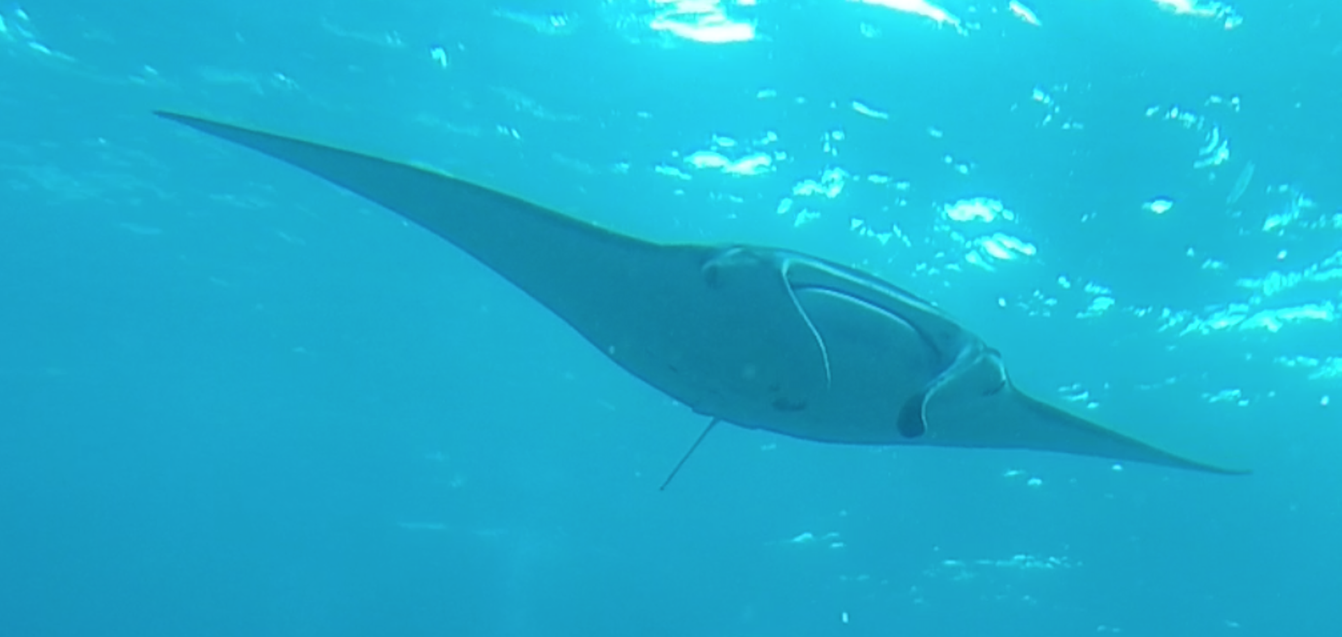 Aber die drei Mantas, die sich dort zwischen insgesamt 11 Tauchern und 2 Schnorchlern heraumräkelten, kratzten auch wortwörtlich an der Oberfläche und genossen die wilde Dünung.