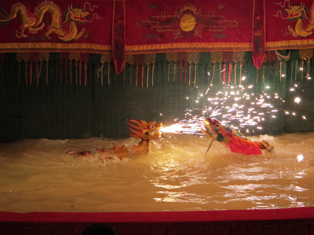 Abends haben wir noch beim Wasserpuppentheater reingeschnuppert und beim Abendessen den Reiseberichten des ehemaligen GIs John aus Illinois gelauscht. Da kam einiges zusammen seit Einsatz im Vietnam-Krieg bis heute mit 72 Jahren!