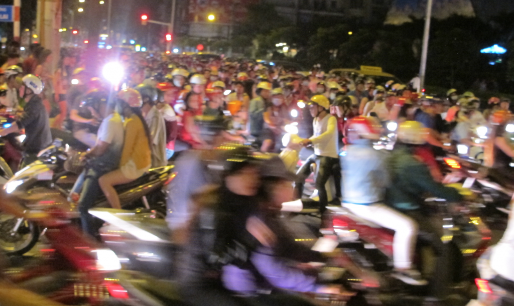 Er manifestierte sich in Gestalt tausender Mopeds, die von allen Seiten auf die Kreuzung strömten.