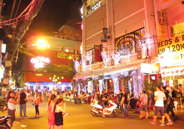 Und zwar in einer Seitengasse der Bui Vien Road. In einem superschmalen zweistöckigem Häuschen mit leiterähnlichen Treppen, folgten wir bis unter’s Dach und wurden noch einmal durchgeknetet. 40 Minuten lang.
