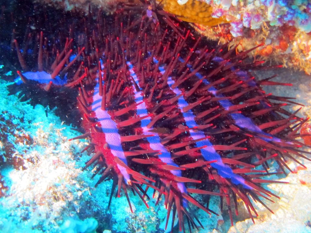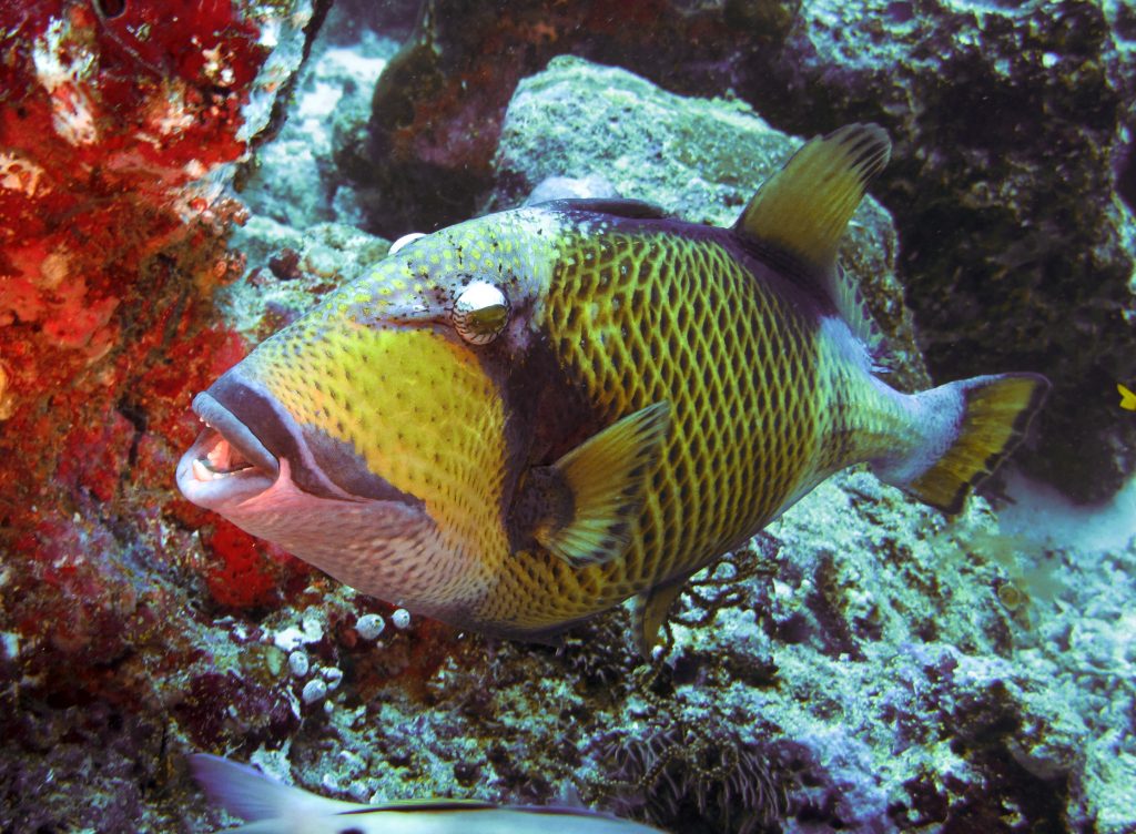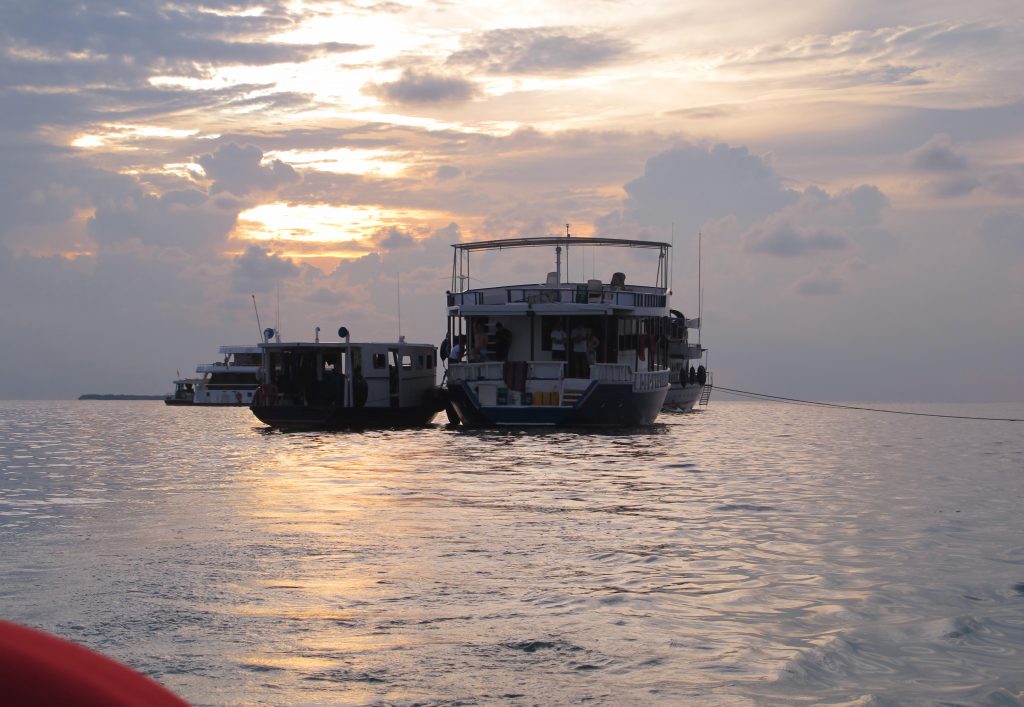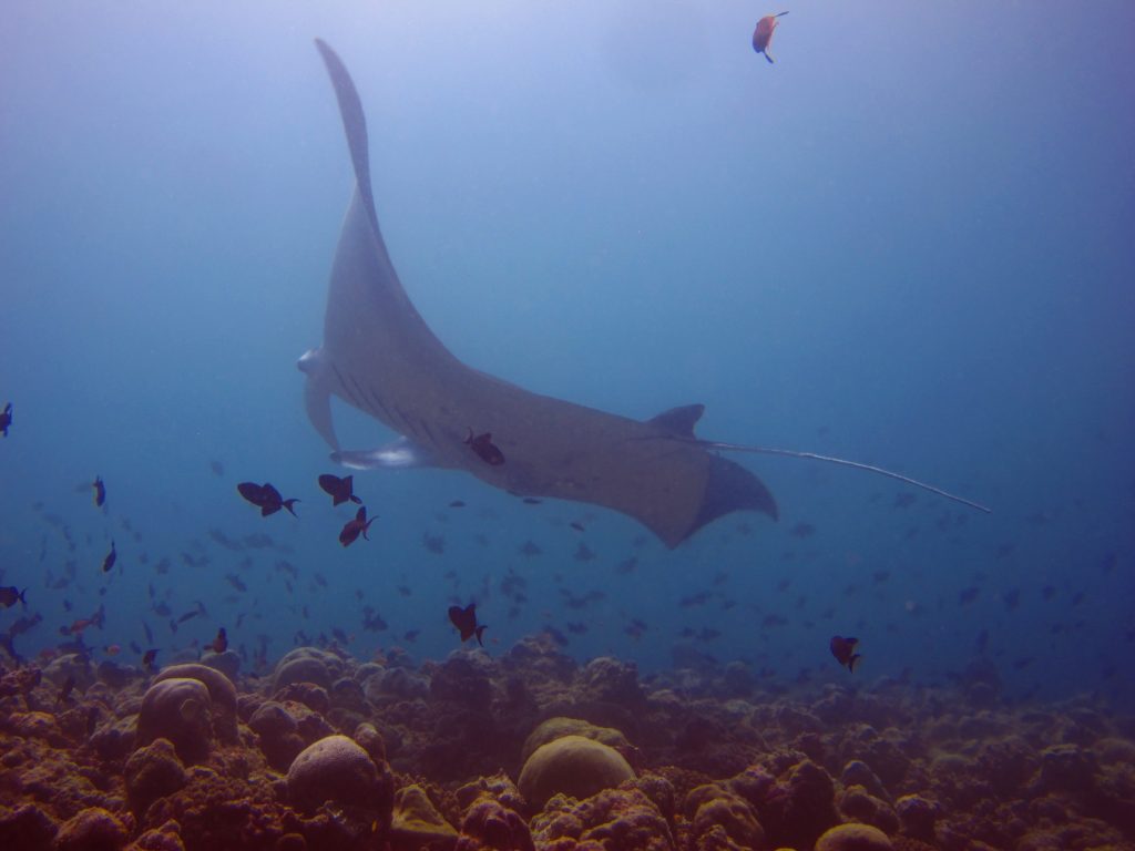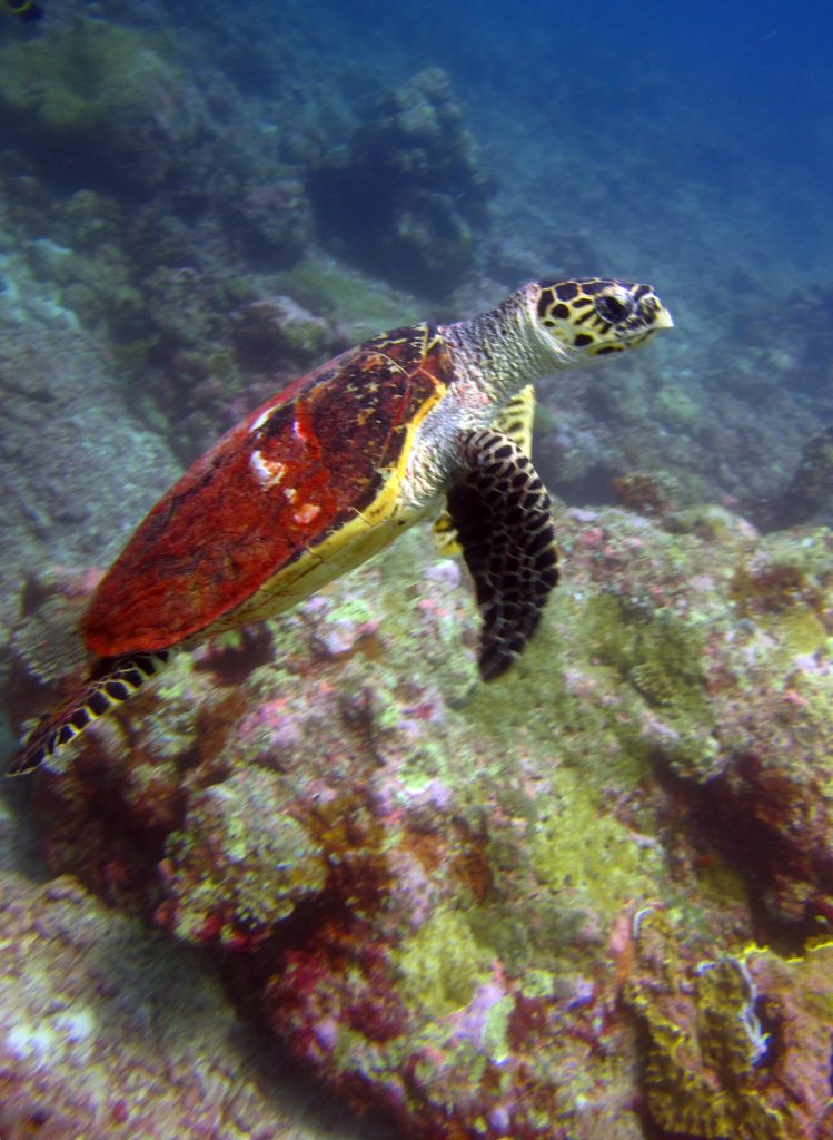 ..den hab ich gefilmt und verfolgt!morgens…6 Uhr …tauchen…..wir sitzen im Riff…?!?!viel los da untendie Emperor Atoll und unsere Luna (Dhoni)…warum drumherum kriechen?!..das Knotige da ist ne Schnecke