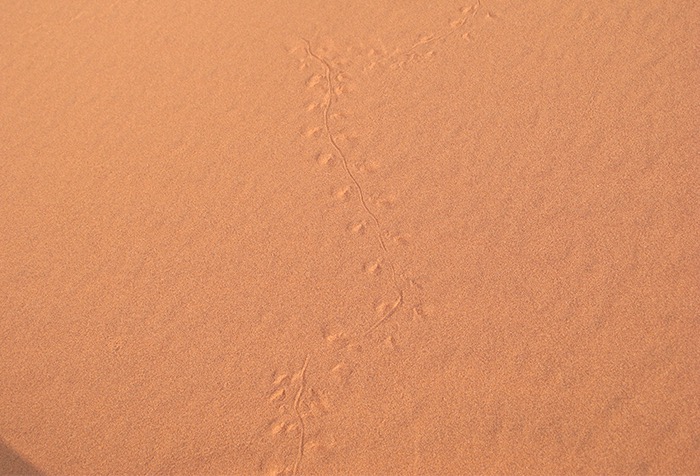 Wir stolperten unseren ersten Dünenkamm hinauf und rutschten ihn auf dem Bauch und auf dem Hintern wieder hinab. Wir lernten erste Spuren zu lesen und lernten uns besser kennen. Wir feierten uns und unser Leben bei täglich fantastischem Essen auf dem Feuer gegart, lachten viel, tranken viel und wurden von Tag zu Tag souveräner im Auf- und Abbau des Camps und dem Ent- und Beladen des Hängers.