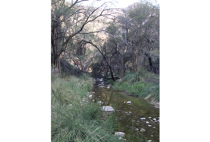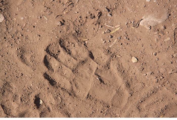 Einige von uns hängten am Nachmittag noch den 5-Kilometer-langen Waterkloof Trail zu den natürlichen Pools entlang des Wasserlaufs an. Ein wundersam grünes Idyll nach den Tagen voll Staub und Sand. Dazu neue Tierbegegnungen mit Manguste, Agame, Klippspringer, Tok Tok, Klippschliefer und die allgegenwärtigen Spuren von Leopard und Pavian. Letztere – hier Baboon genannt – hatten unsere Abwesenheit im Camp auch pflichtbewusst genutzt um auf den Zelten herumzuspringen, den Müll zu durchforsten und ein wenig Toilettenpapier zu zerfetzen. Wir waren vorgewarnt und hatten entsprechend alles Wichtige verräumt. Aber nicht jeder Camper schien sich der heimlichen Beobachter bewusst. Und so spazierte ein ausgewachsener Pavian seelenruhig durch das Camp, griff sich die Packung Toastbrot der Nachbarn und feierte danach jede vertilgte Schnitte auf einem Stein sitzend mit triumphalen Gebrüll. Schnitte für Schnitte.