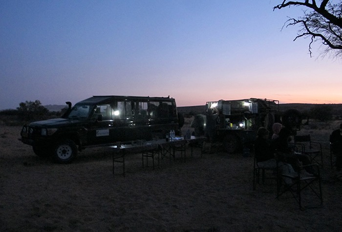 Mein persönliches Lieblingscamp der Reise! Auch wenn es in dieser Nacht empfindlich kalt wurde und wir ohne „namibische Sitzheizung“ in Form von glühenden Kohlen unter dem Klappstuhl sicherlich alle um 19 Uhr in den Schlafsack geflüchtet wären.