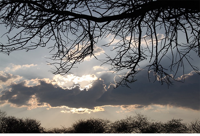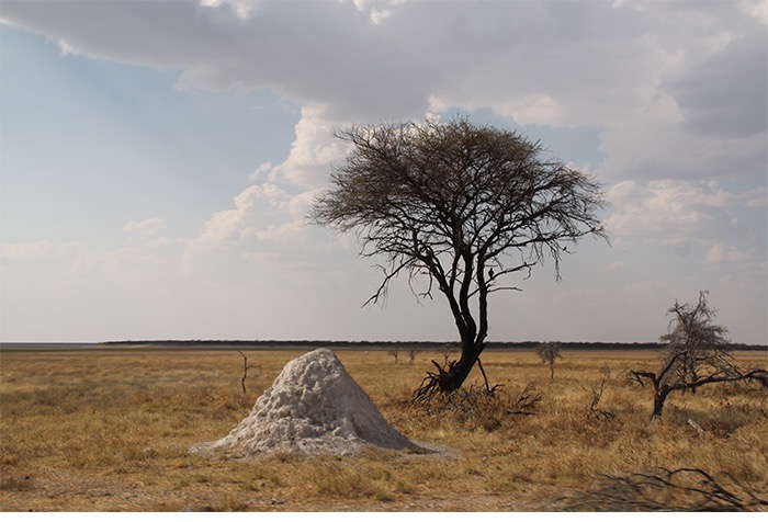 In meiner Erinnerung wird Hobatere immer das ‚Löwencamp’ bleiben, da sowohl Spuren als auch Rufe ihre Nähe versprachen. Doch diese Indizien reichten dem ein oder anderen der Gruppe nicht aus um ernsthaft vorsichtiger beim nächtlichen Toilettengang zu sein. Zum Glück aller ohne Konsequenzen. Auch war es unsere erste Nacht, wo das längst in Vergessenheit geratene Phänomen „Wassertropfen fallen aus dem Himmel“ uns einholte! Von nun an folgten einige Tage mit täglich circa zehn Minuten dicker Tropfen, die gemütlich nach dem Abendessen herabregneten. Müßig zu erwähnen, dass das Wasser ebenso schnell verdunstete wie es brauchte herabzufallen. Aber so richtig gemütlich lässt es sich dennoch nicht ohne Dach verweilen.
