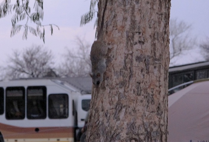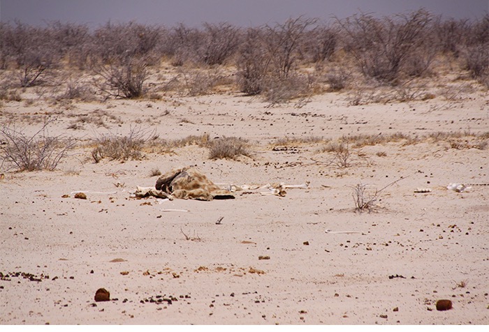 Von Palmwag aus überquerten wir einmal mehr den Veterinärzaun, der den Vieh- und Wildbestand des Nordens von dem des restlichen Landes separieren soll. Sowohl die weidezaunlose Viehhaltung des Nordens als auch eine lang zurückliegende Epidemie der Maul- und Klauenseuche war da der Stein des Anstoßes. Allerdings überzeugen die unternommenen Schritte selbst einen Laien nicht. Unzählige Tierarten können den Zaun problemlos überwinden oder darüber hinweg kommunizieren. Die Teams der Kontrollpunkte glänzen dazu noch mit Ineffektivität. Reifenseite und Felgen werden mit irgendeiner Lösung besprüht, Reifenprofil und Fahrzeugunterboden nicht. Fleischvorräte würden sie gerne konfiszieren, auch wenn belegt ist, dass man nur eine Nacht in Sichtweite und ohne ansässigen Supermarkt nördlich des Zauns verbracht hat. Fahrername, Fahreralter, Unternehmen, letzte Station, nächstes Ziel, Kühlschrank falls vorhanden kurz angeschaut, Fahrzeugkennzeichen, -modell, -farbe (die wurde ich stets gefragt .. dies schien bei dunkelgrün wohl sicherer als selbst zu schauen) werden notiert, ein Ausweis aber nicht verlangt. Alle tragen ernsthafte Uniformen und teilen sich die genannten Schritte zu dritt oder zu viert auf … und schon darf man weiterfahren.